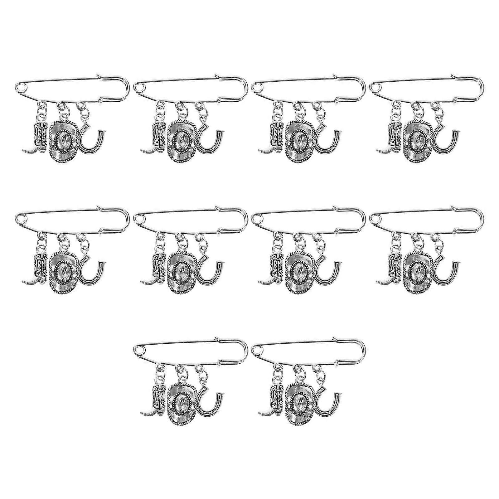 10Pcs Classical Western Cowboy Jewelry Pin Brooch Fashionable Safety Laple Pin Chest Ornament Clothing Decoration Multicolor