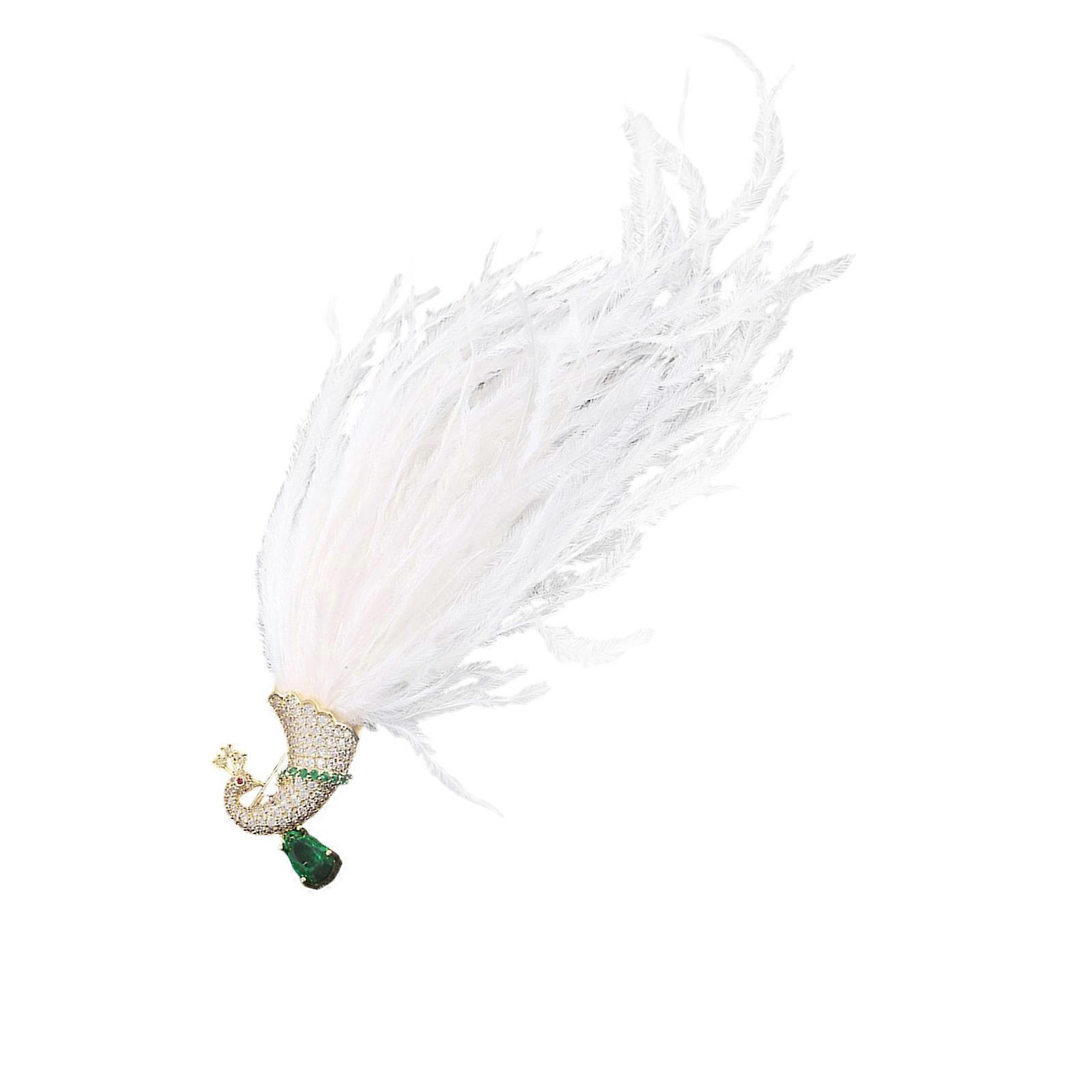 Elegant Peacocks Feathers Brooch Alloy Jewelry Secure Clasp for Women Daily Wear Special Occasions White