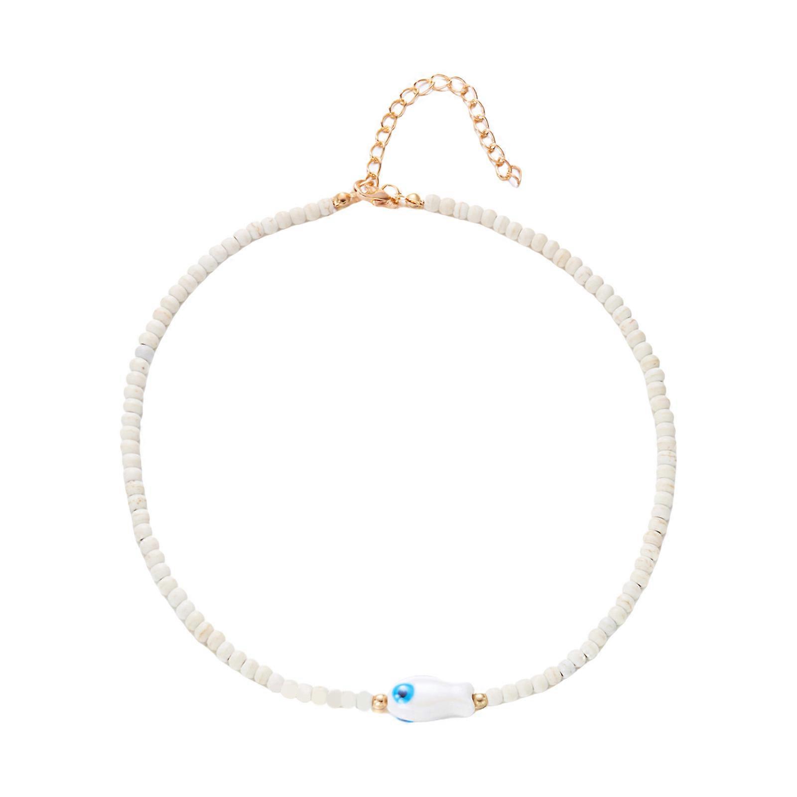 Playful Ceramic Fish Beaded Necklace Bohemian Inspired Collarbone Chain Jewelry For Casual Style White