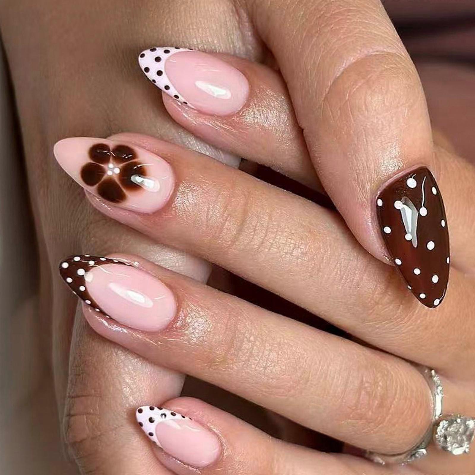 Hypoallergenics Press On Nail 24Pcs Autumn Winter French Tip Glitters Black White Coffee Seasonal Nail Art Multiple Sizes Multicolor