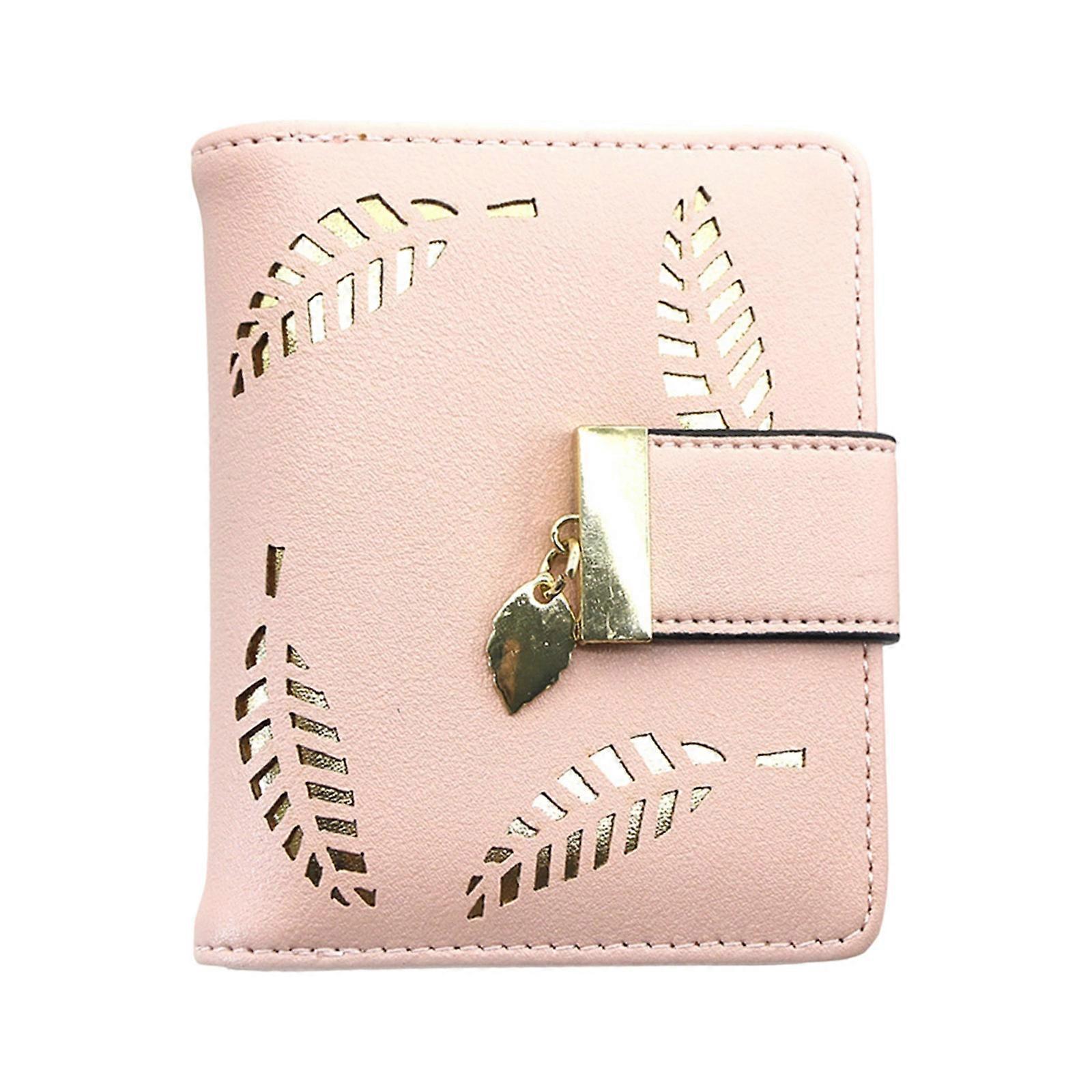 Leaf Cutout Short PU Wallet for Women Compact Lightweight Purse Practical Card Holder Secure Closure Multiple Slots Pink
