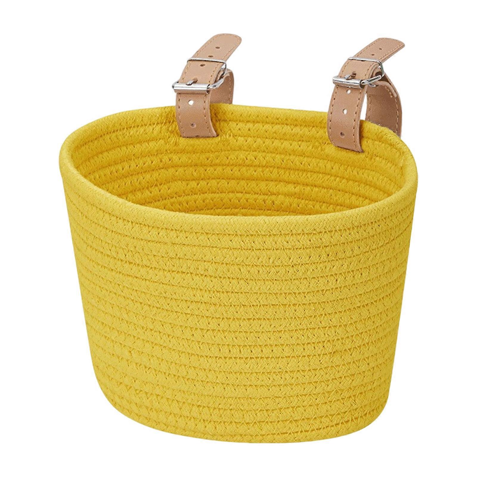 Kids Bike Storage Basket Woven Construction System Weatherproof Finish Large Capacity For Outdoor Rides Yellow