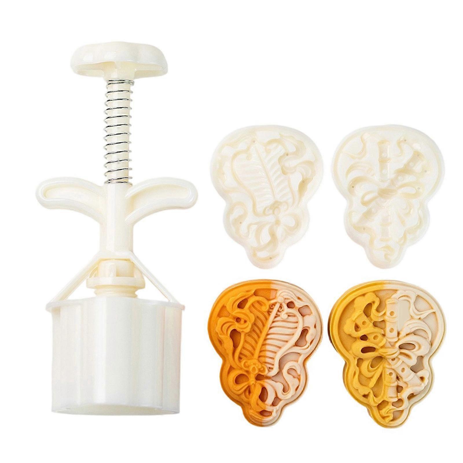 Chinese Autumn Festival Dessert Hand Press Molds Double Fan And Flute Design Ergonomic Hand Press For Homemades Baking Multicolor