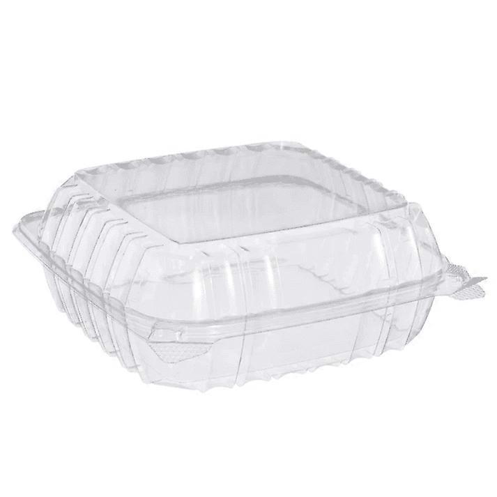 The hinged design ensures the base and lid remain attached while providing a tight seal to lock in your food's flavor and freshness. Plus, the hinged design cuts down product inventory and saves storage space with its nestable design. Dimensions: 8.25" L x 8.25" W x 3.0" H The crystal clear design provides optimal product visibility, making your food instantly identifiable. It also expertly showcases the vibrant colors of full meals or selections of desserts. Leak-resistant perimeter seal ensure product freshness The hinged design ensures the base and lid remain attached while providing a tight seal to lock in your food's flavor and freshness. Plus, the hinged design cuts down product inventory and saves storage space with its nestable design.