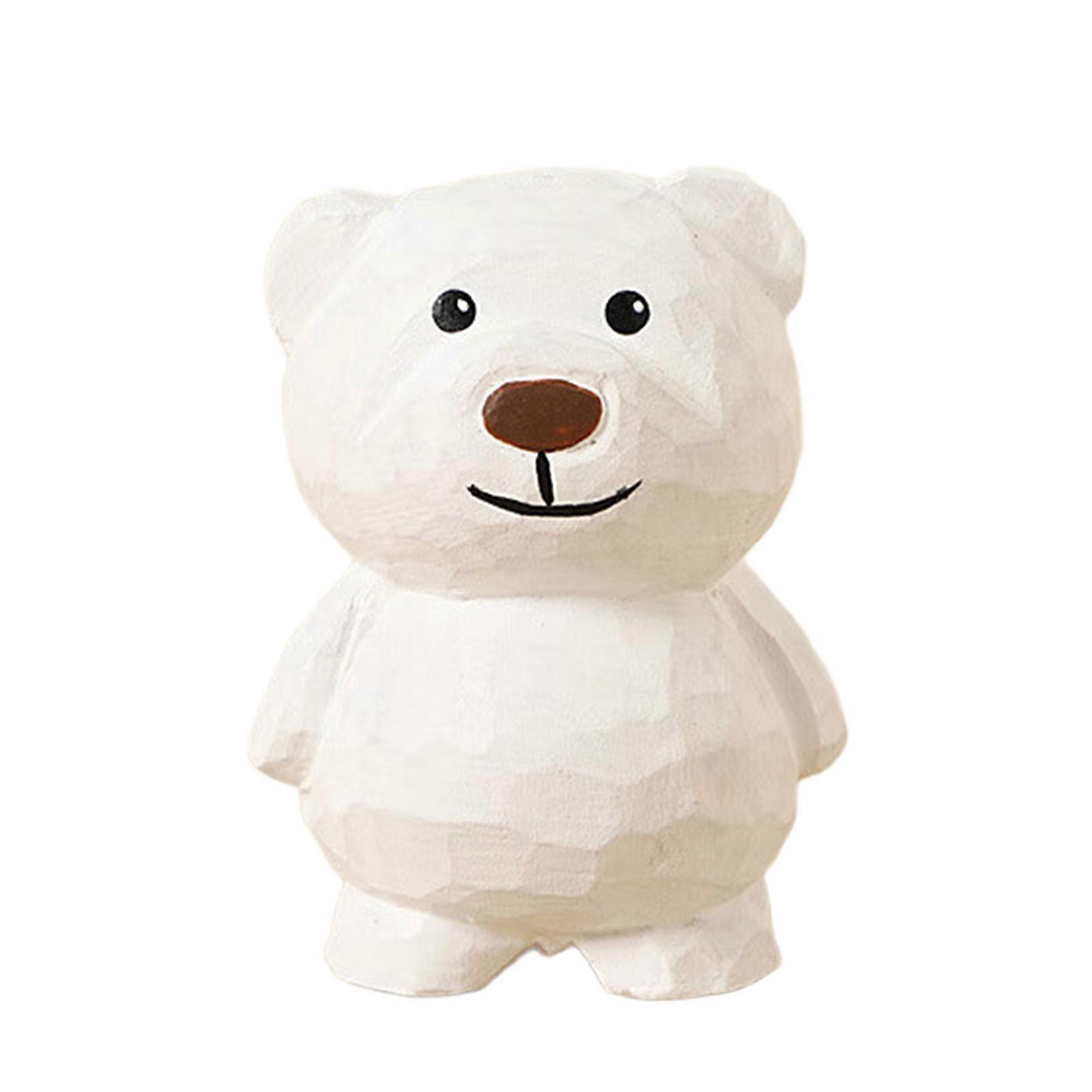 Handmade Wood Bear Statue Decorative Table Ornament Perfect For Gift And Interior Styling Ornament Gift White