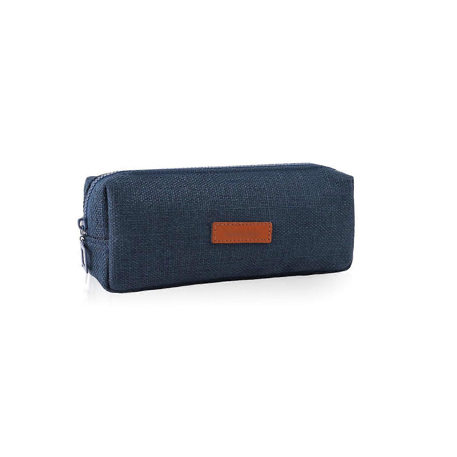 Reusable Simple Pen Pouch Polyester Texture Suitable for School Kids Multicolor Stationerys Organizers with Zippers Closure Navy blue