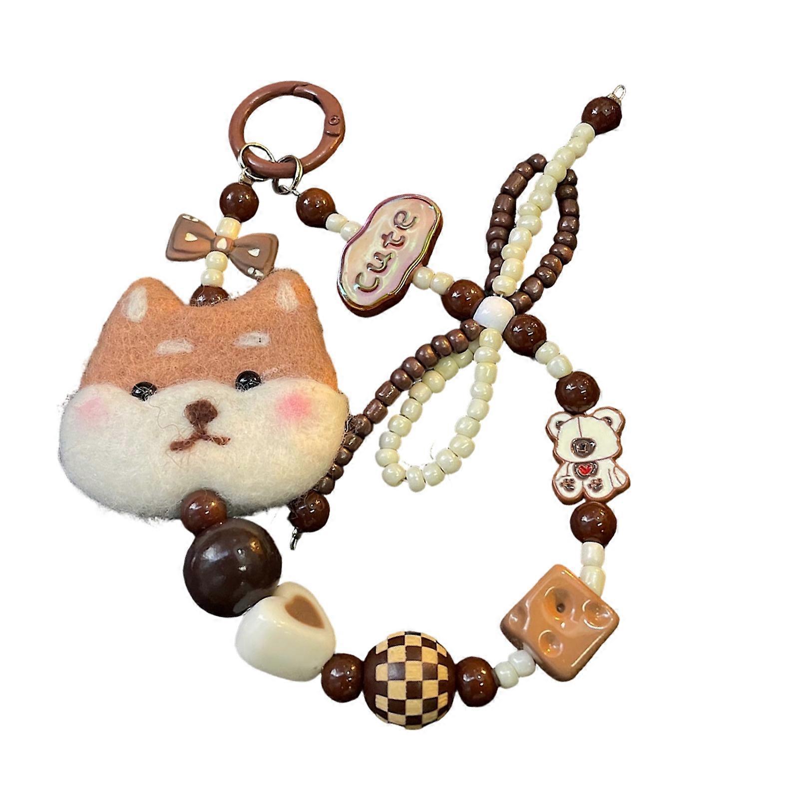 Decorative Dog Key Holder Adorable Felt Shiba Inu Beads Bowknot Keychain Lightweight PVC For Daily Essential Multicolor