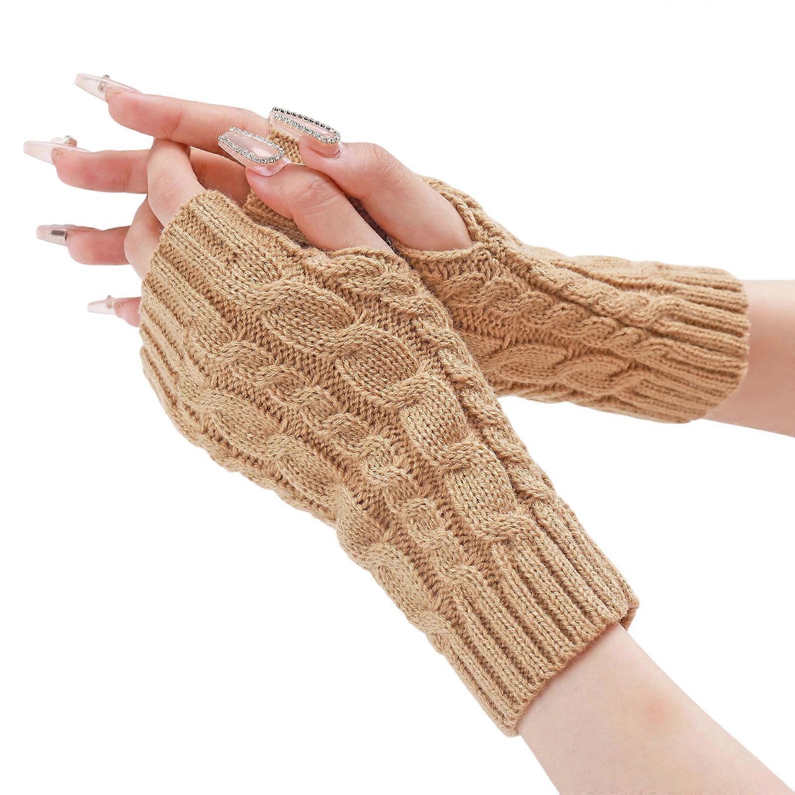 Cable Knitted Fingerless Arm Warmer Acrylic Stretch Gloves Wrist Sleeves For Winter Commute Outdoor Activity Unisex Yellow