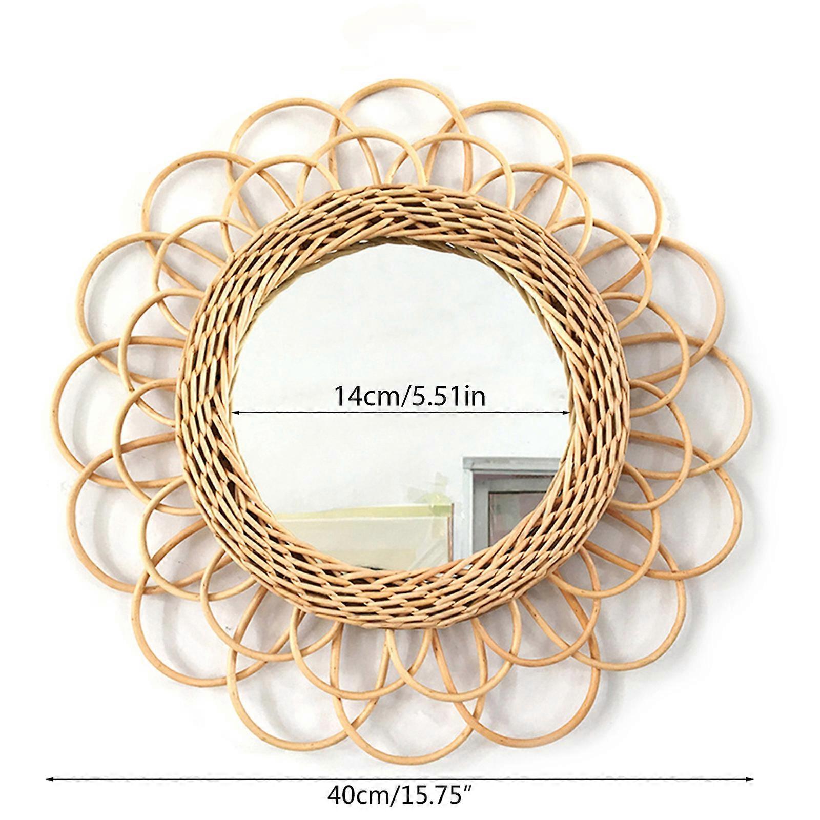 Natural Rattan Innovative Art Decorative Makeup Mirror Dressing Living Room Bathroom Wall Hanging Craft Photography Prop Multicolor