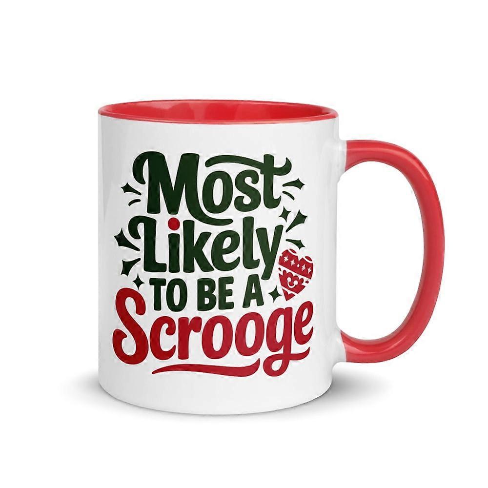 Family Matching Xmas Mug with Color Inside, Most Likely To Be A Scrooge Christmas Present (Red, 11 oz)