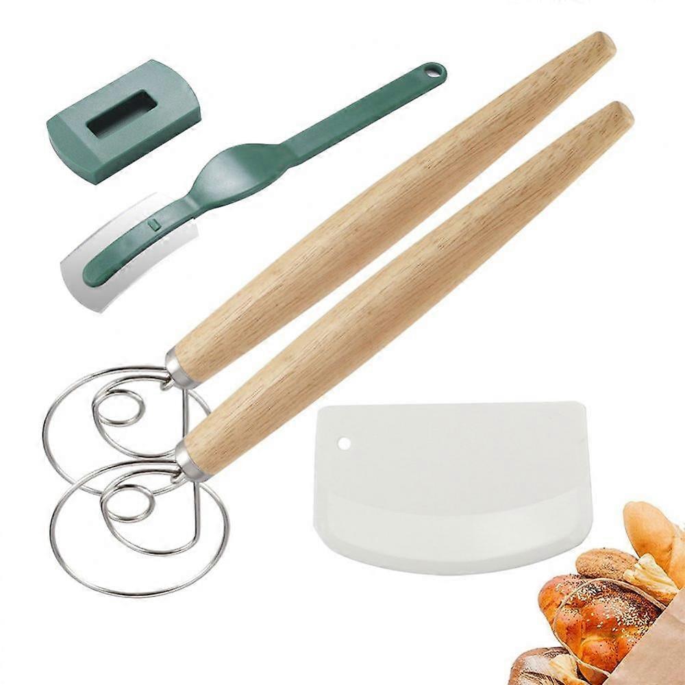 Bread Tool Danish Dough Whisk Bread Mixer Premium Stainless Steel Dutch Whisk & A Dough Scraper For Bread Pizza Dough