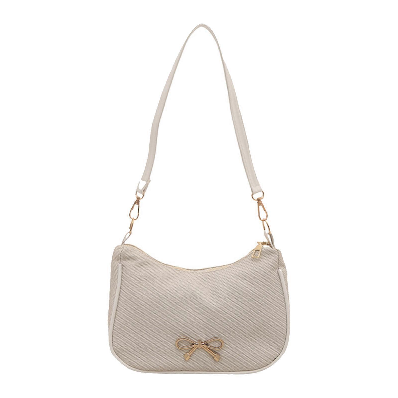 Women's Shoulder Bag Stylish Ladies Armpit Bag Bows Decors Handbag For Travel And Carrying Essential For Office Travel White