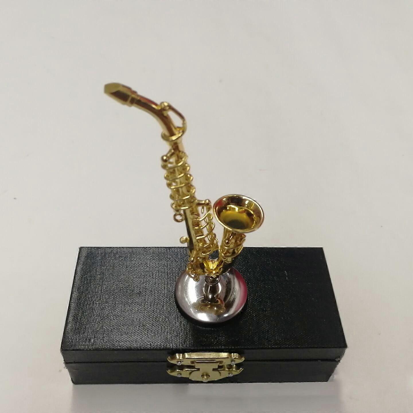 Yakbaofuo Mini Copper Musical Instrument with Stand & Case, Compatible with Dollhouse Model, Mini Home Decor for Christmas Halloween