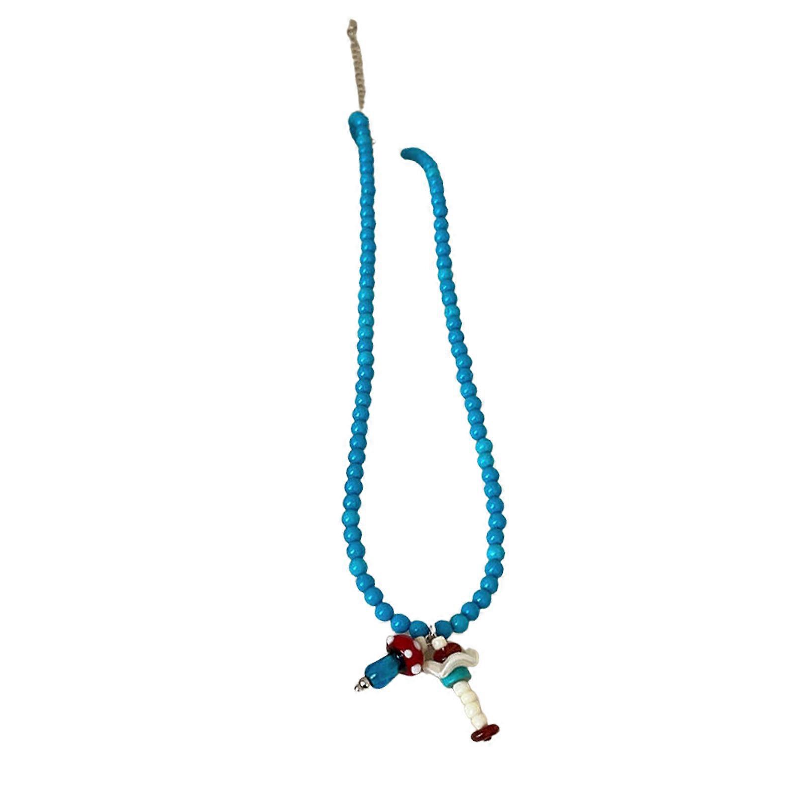Trendy Blue Bead Chain Necklace Fish/Mushroom Pendants Adjustable Clavicle Chain Everyday Fashion Jewelry For Women Multicolor