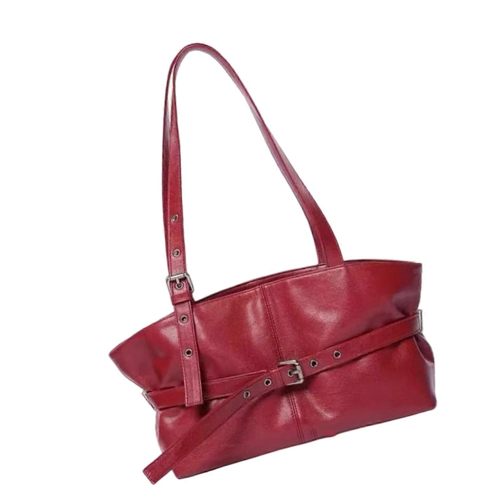 Large Work Bag Premium PU Leather Structured Base Comfortable Shoulder Support Underarm Purse for Women Red