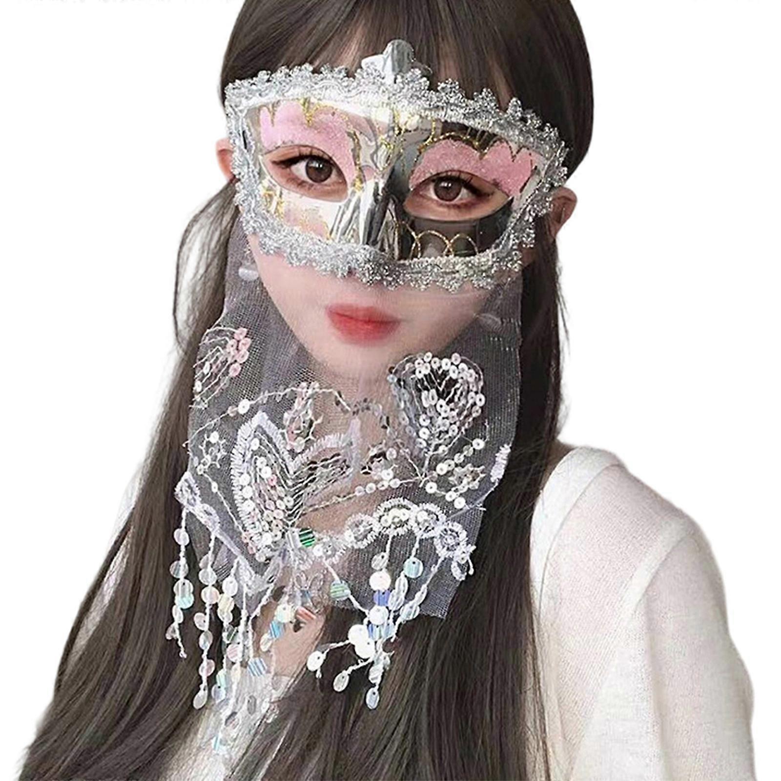 Womens Masquerades Mask Venetians Mask Halloween Mardi Gras Costumes Wedding Party Ball Prom Mask Eye Mask with Veil Silver