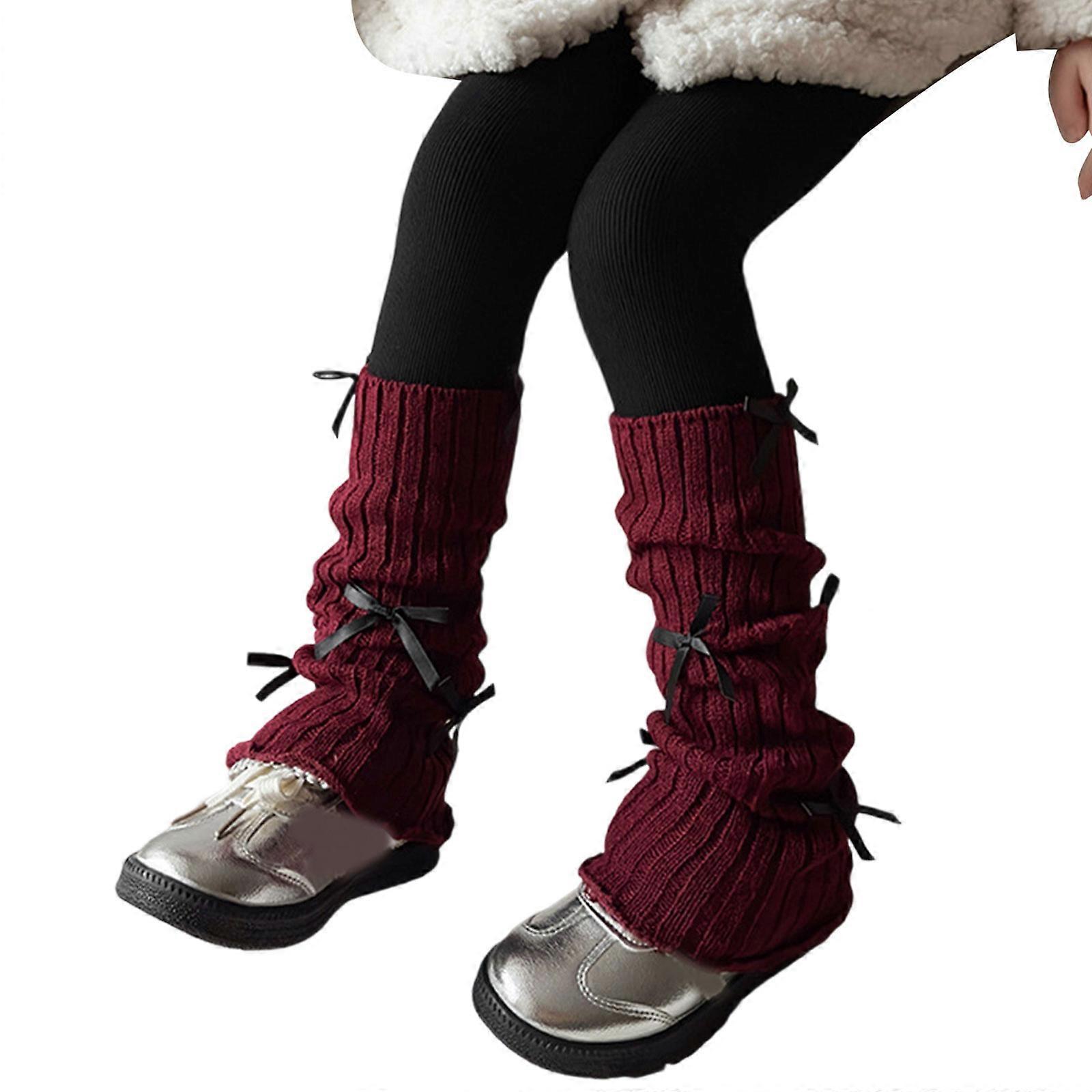 Anti Tear Winter Leggings For Girls Thickened Fleece Lined Thermal Pants High Elasticity Daily Comfort Bowknot Charm Claret XL