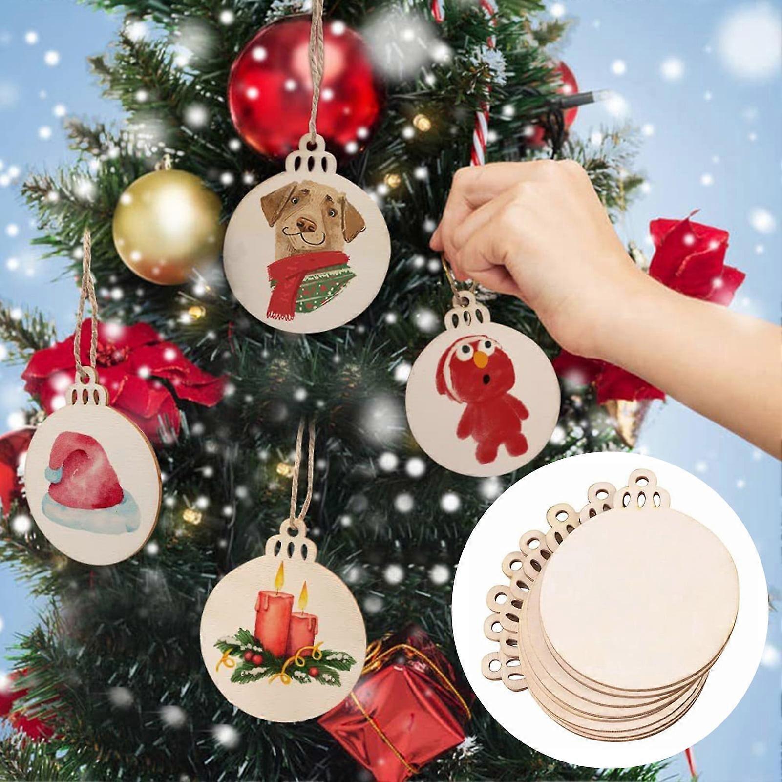 SUSUchens Christmas Pendants, Wooden Round Tree Decorations, 10 pcs with Lanyards, 9cm, Compatible with DIY Craft & New Year Hanging