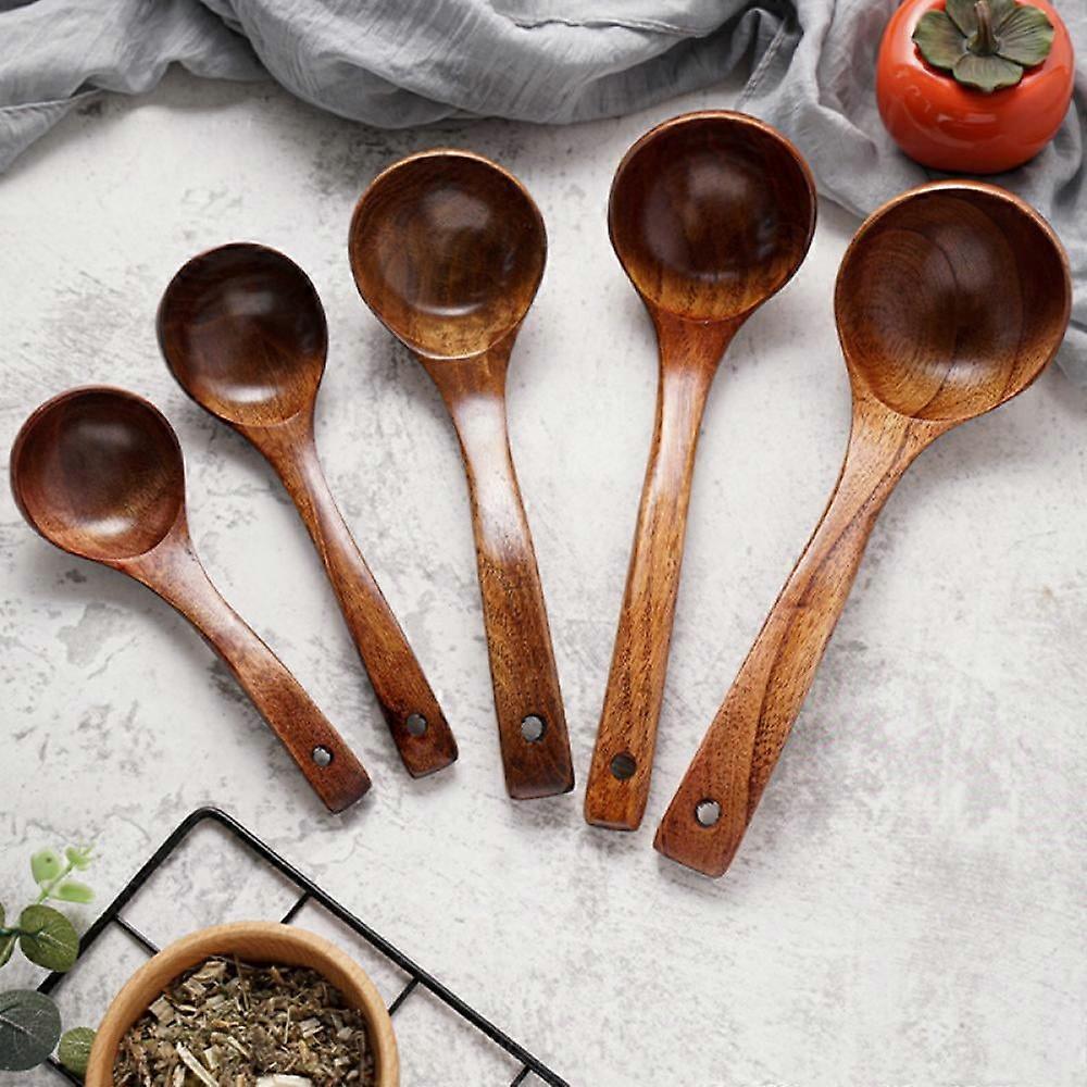 5pcs Wooden Spoon,Long Handle Ladle,Kitchen Cooking Spoon,Big Soup Spoon,Anti-hot Porridge Spoon,Wooden Dinnerware,Kitchen Special Spoon