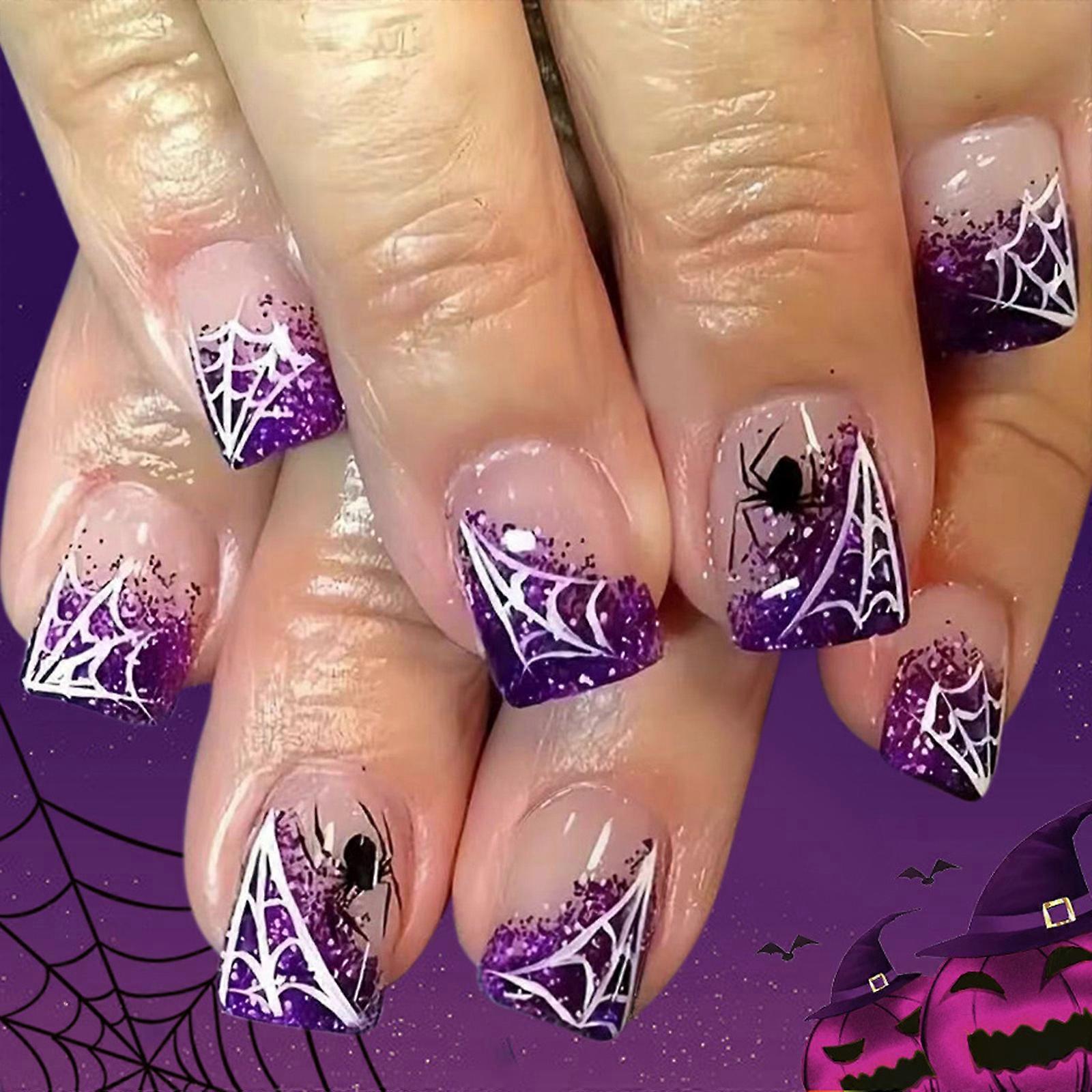 Spiderweb Glamouring Nail Plastic White Cobweb Halloween Nail Art For Costume Parties And Event 24pcs Multicolor