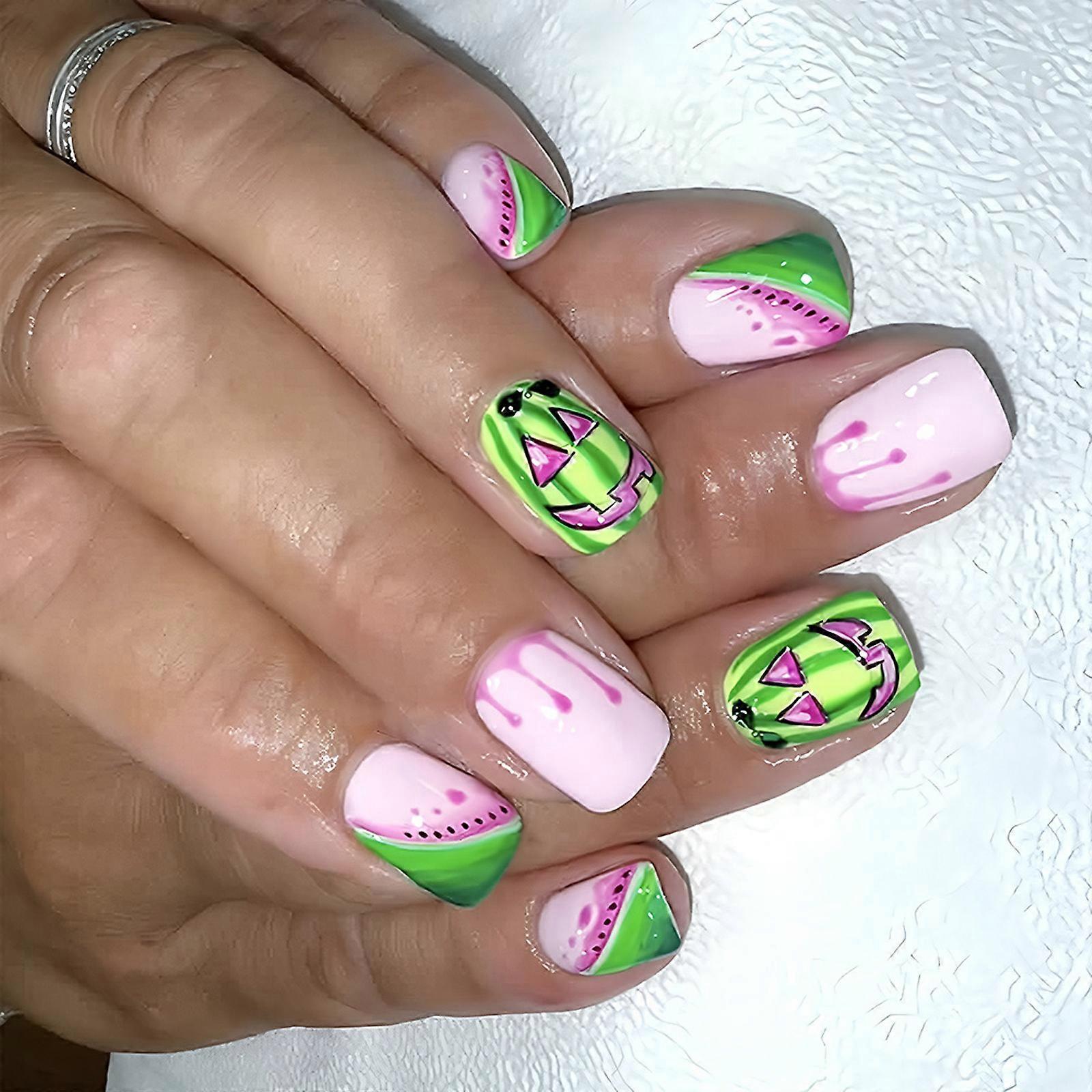24PcsABS Press On Nail Minimalists French Manicure Halloween Patterns Quickly Stick Art False Nail For Busy Ladies Multicolor