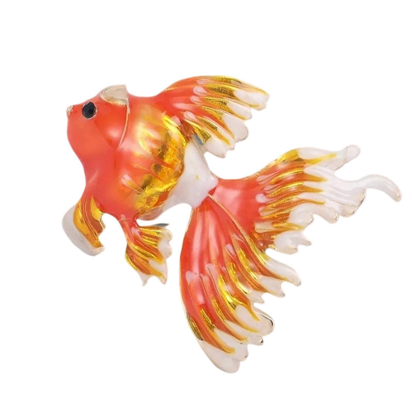 Goldfish Design Brooch Trendy Fish Pendant Lapel Pin Accessory Metal Enamel Detailing Clothing Accessories Orange