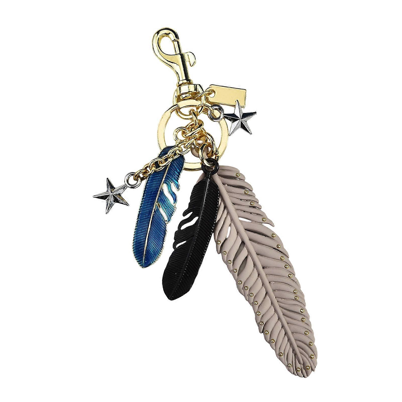 Modern Star Feathered Keyring Trendy Jewelry Accessory Lightweight Sturdy Alloy Gift Bag Charm Accessory For Her Him Multicolor