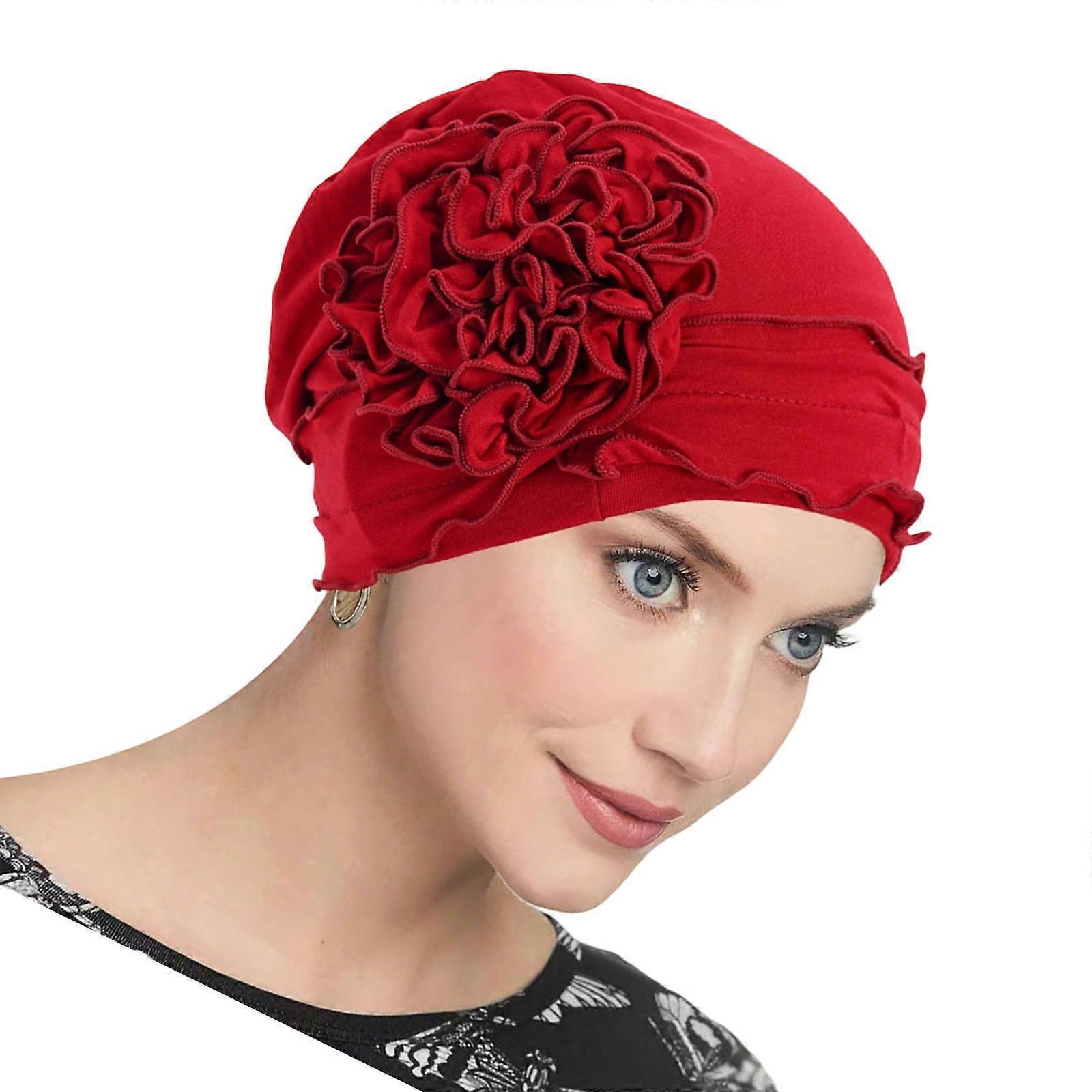 Elasticated Blossomy Embellished Headscarf Hat Ventilated Polyester Hair Cover For Women Chemotherapy Patients Burgundy