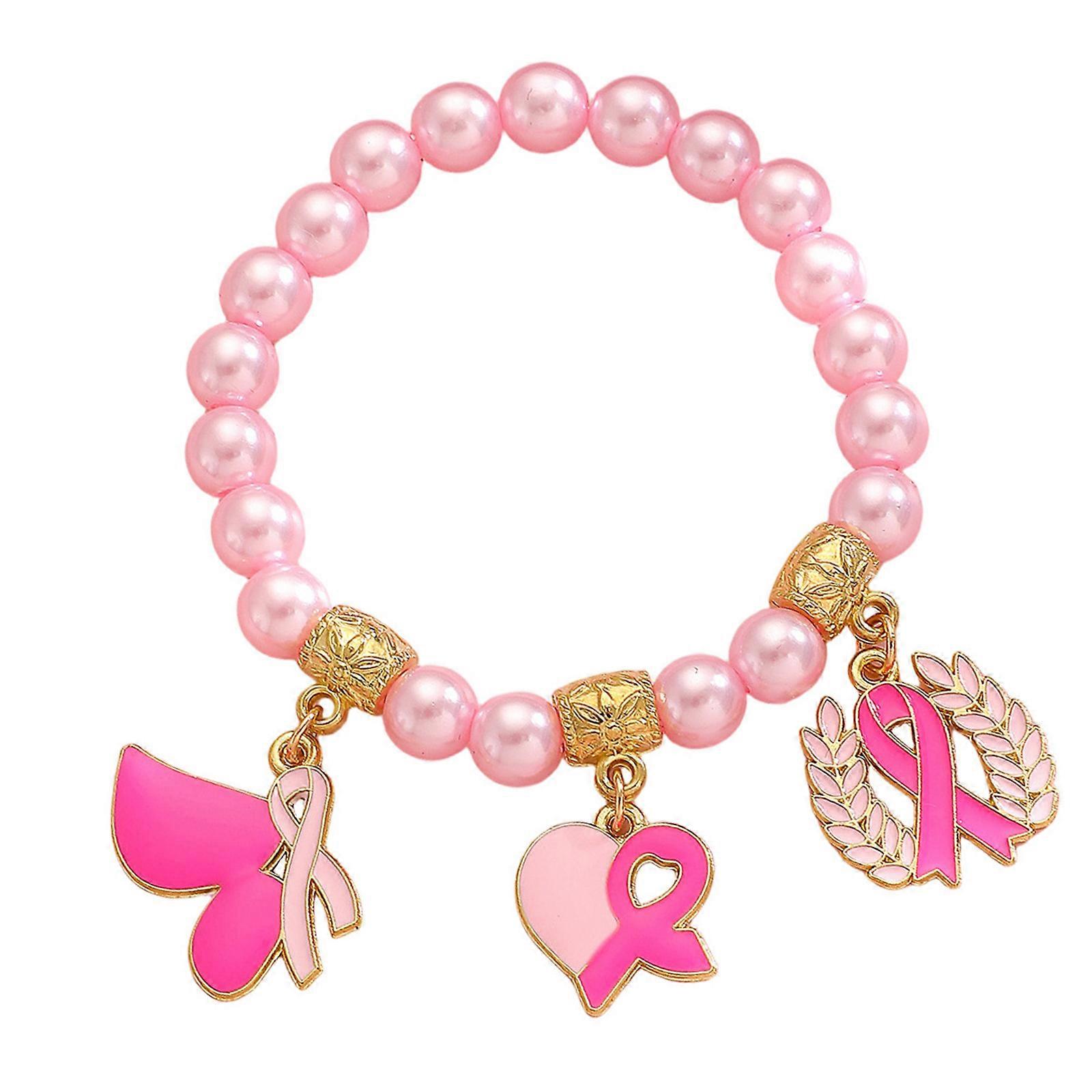 Symbolic Beaded Bracelet For Breast Cancers Awareness Adjustable Design Wristchain Ribbon Wheat Pendant Jewelry Multicolor