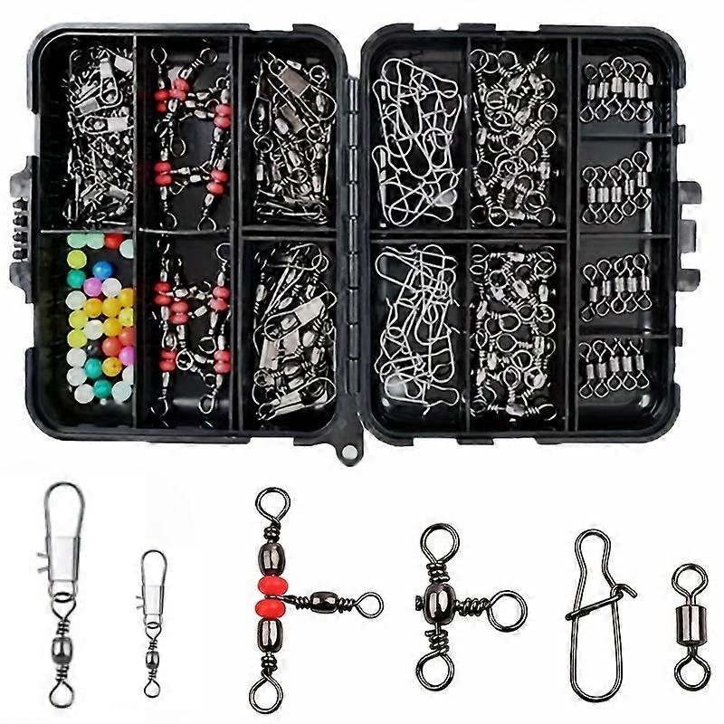 140 piece fishing gear kit, stainless steel swivel and float equipped snap button, durable black box suitable for anglers