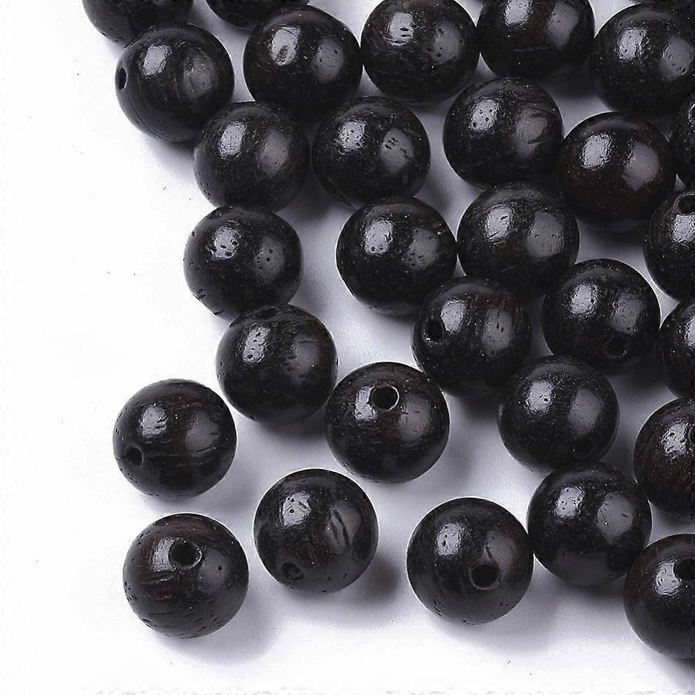 100pc Natural Wood Beads Waxed Wooden Beads Undyed Round Black 8mm Hole: 1.5mm