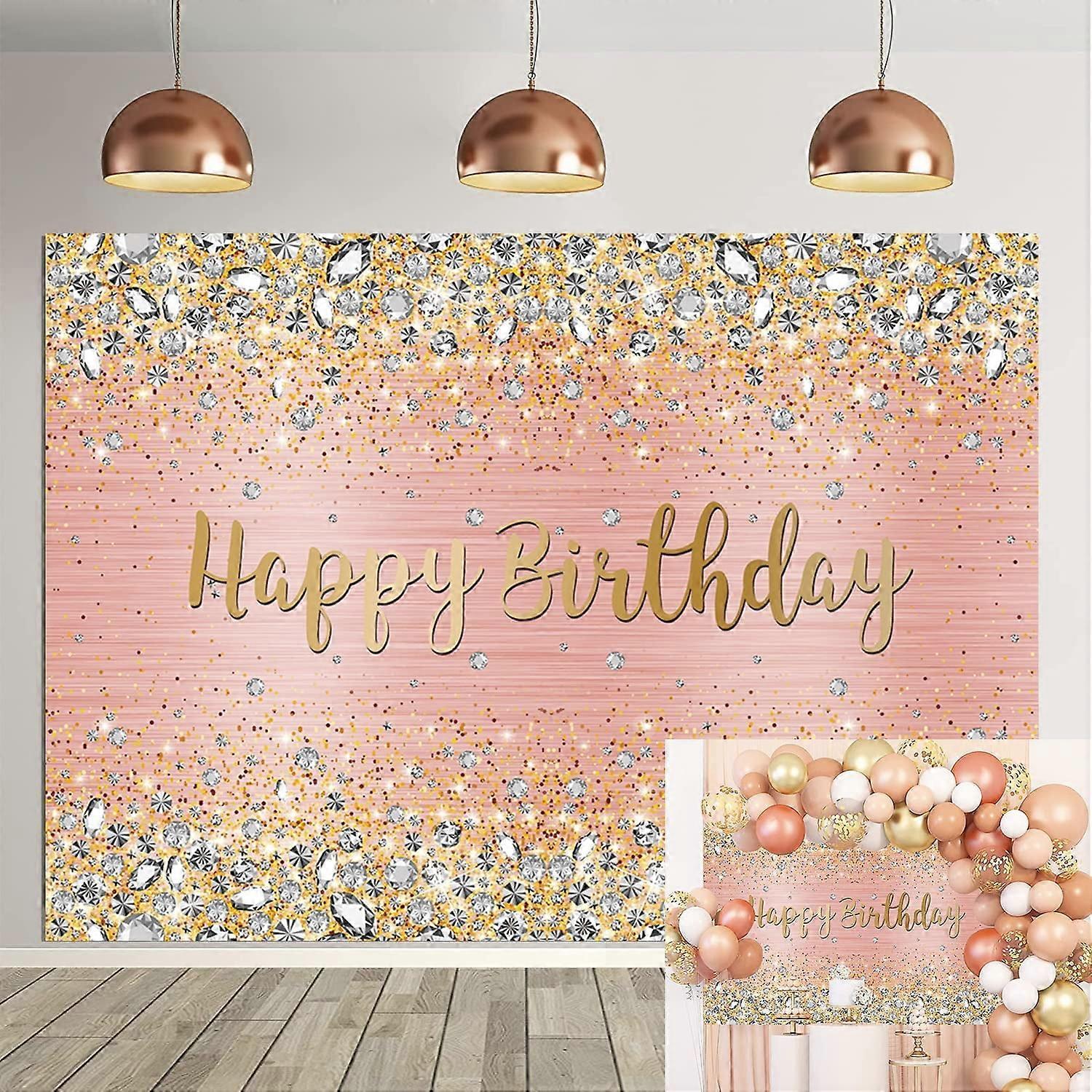 Happy Birthday Backdrop 7x5ft Diamonds Glitter Shining Pink and Gold Dot Sparkle Bokeh Photography Background for Women