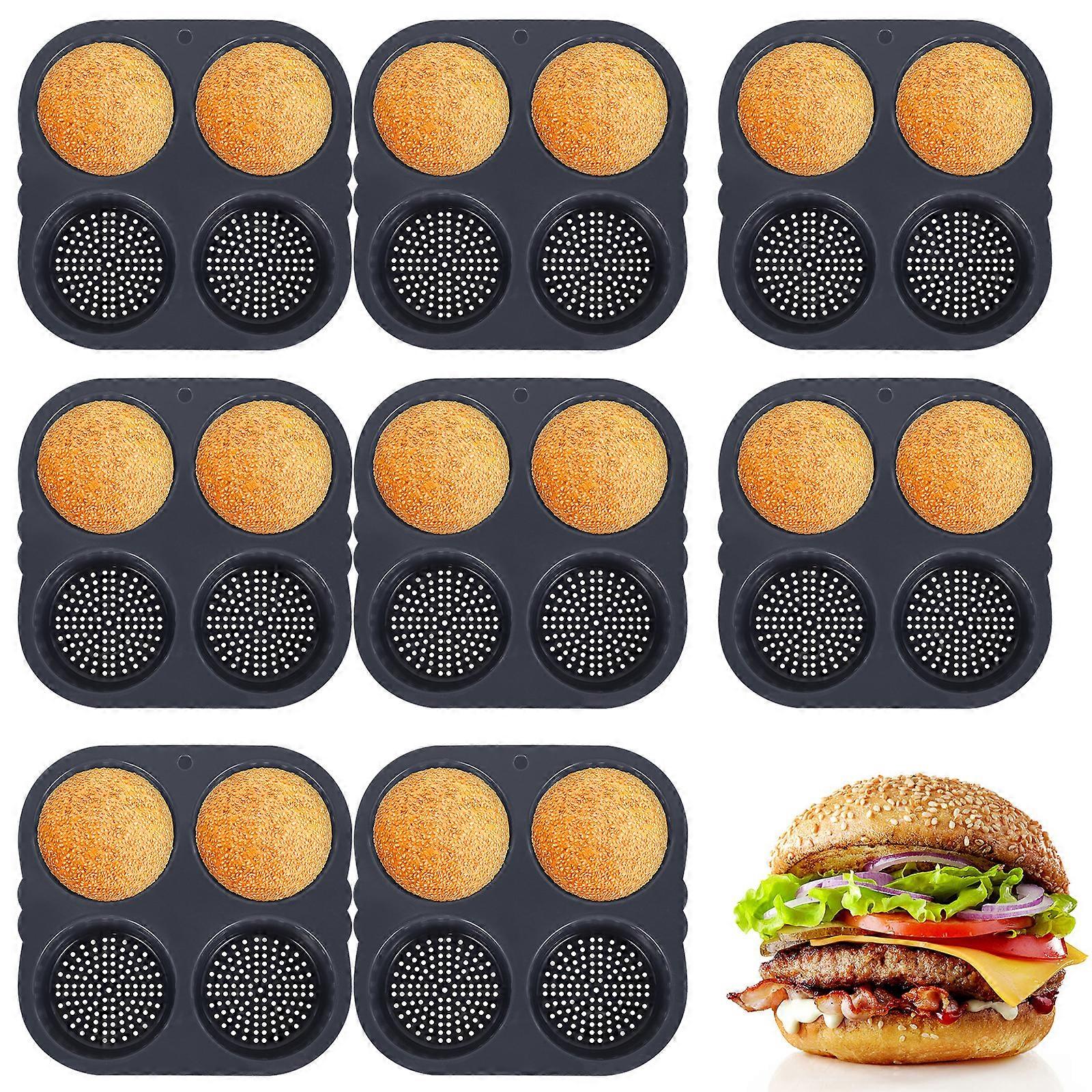 Qenwkxz 8PCS Silicone Hamburger Bun Mold with 4 Cavities Non-stick Hamburger Bun Pan Flexible Reusable Hamburger Bread Mold