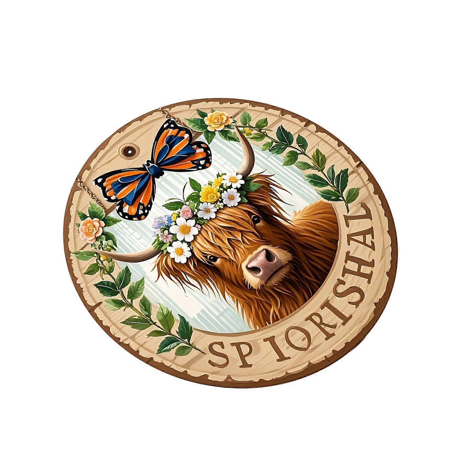 Rural Ranch Wall Suspended Round Oaken Animal Plate Christmas Dining Room Deck Cottage Gift Multicolor