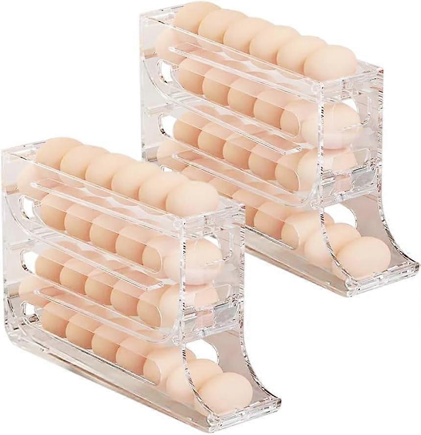 4-Tier Egg Holder for Fridge, 2024 Upgrade Automatic Scrolling Rack, Large Capacity 30-Egg Organizer Storage (Transparent, 1PC)