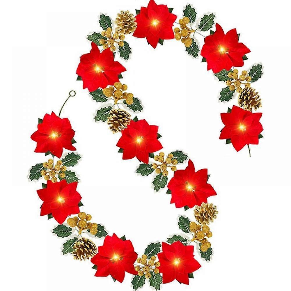 2pcs Poinsettia Wreath with Lights, Artificial Velvet Garland for Christmas, Wedding, Valentine, Thanksgiving Decor