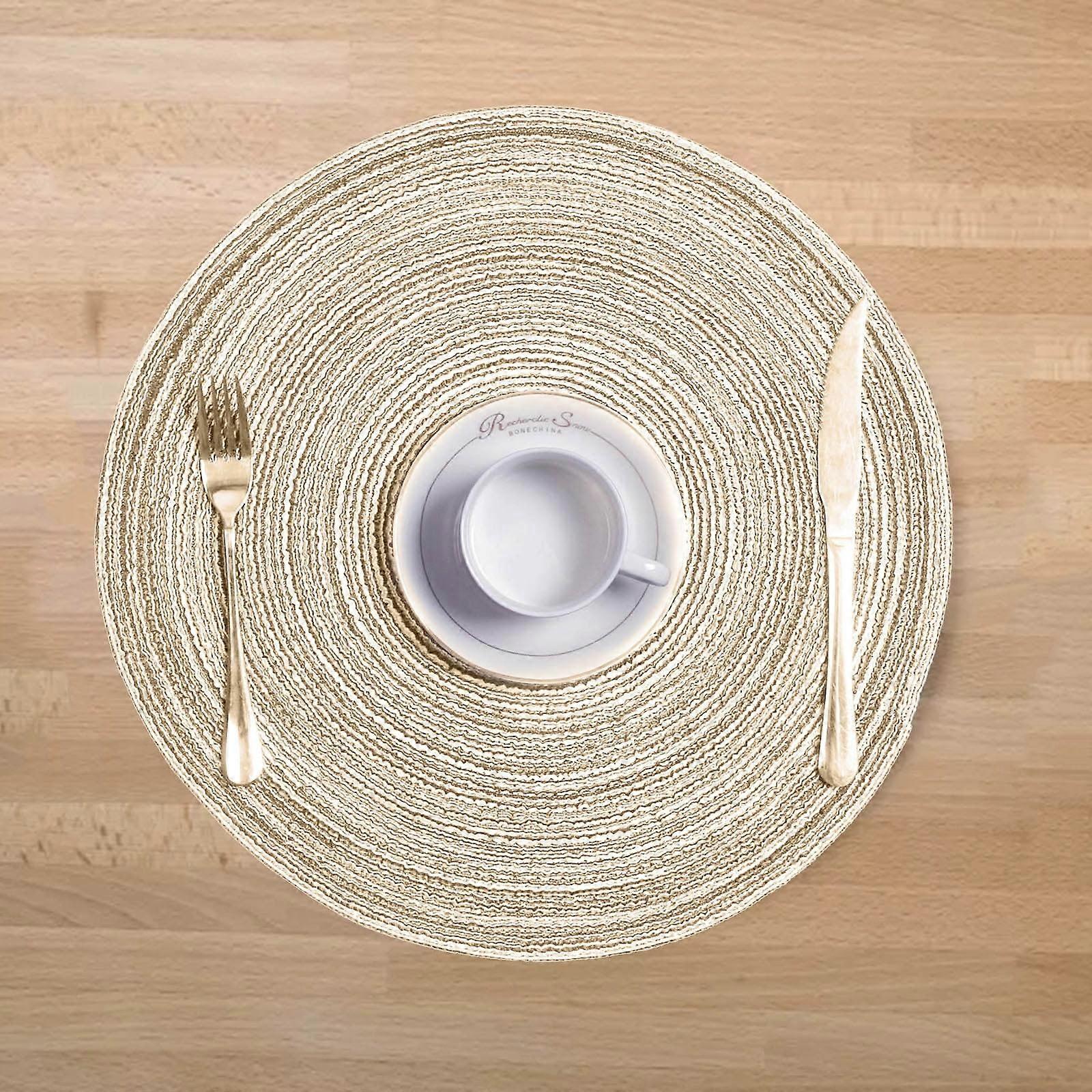 Begine|Placemat Clearance, Coolmade Round Woven Placemats Set Of 6 Dining Tables, Beige, 6X Placemats