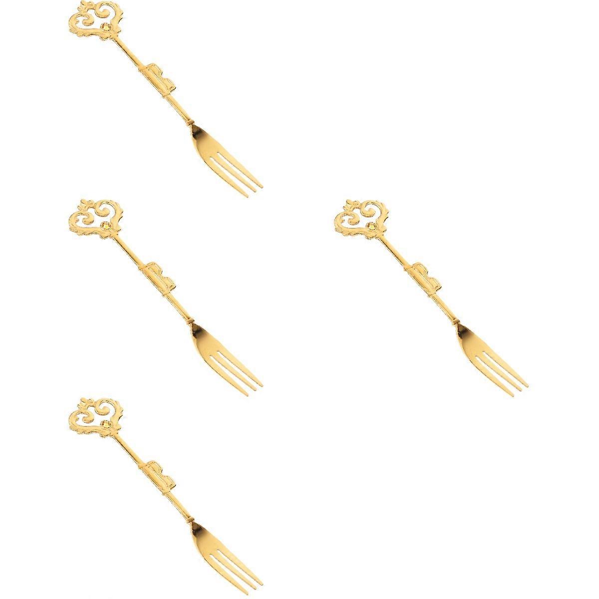 4 Count Golden Vintage Cutlery Tiny Forks Fruit Stainless Steel Spork Hot Pot Fondue Cocktail Pickle Appetizer Girl