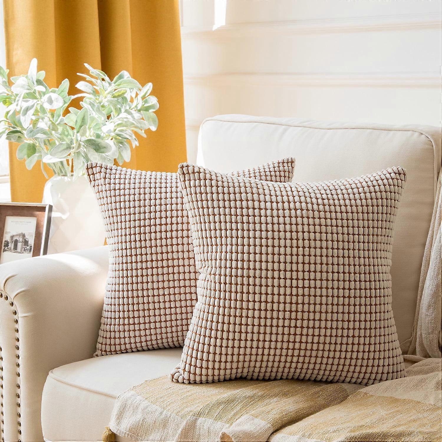 Holiday Deal Selection Soft Corduroy Corn Striped Velvet Decorative Throw Pillow Cover for Bed and Couch, 18" x 18", Off White, 2 Pack