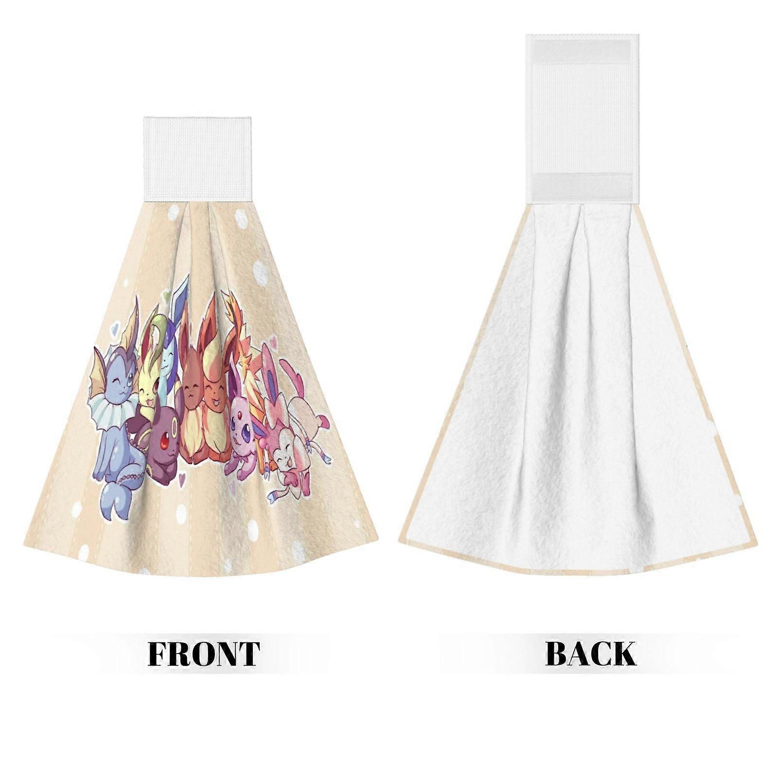 Poke-Mon Ee-V-Ee Pika-Chu Hand Towels With Velcro Loop, Coral Velvet Hand Wipes For Kitchen & Bathroom