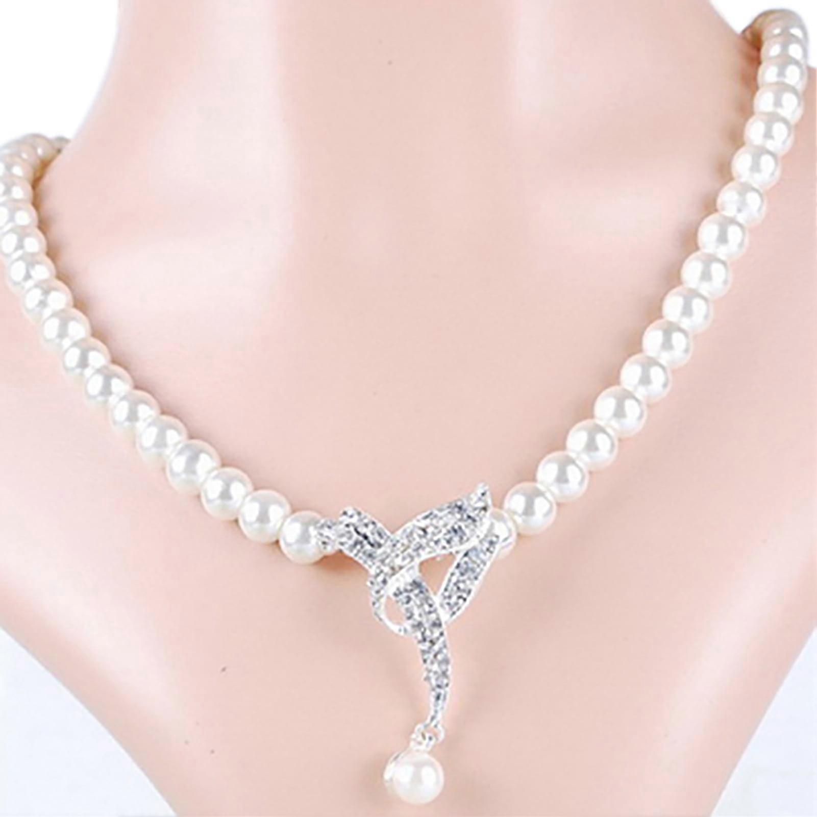 Besufy Women Jewelry Set Faux Pearl Choker Necklace Earrings Wedding Party