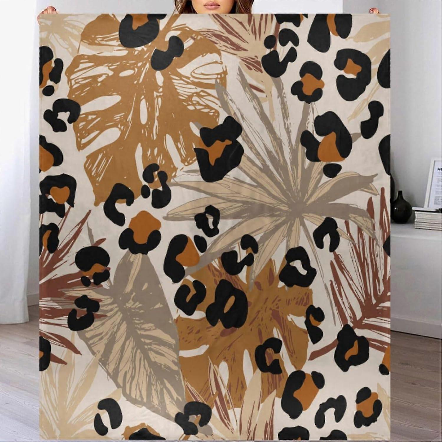 Abstract Leaf Leopard Throw Blanket 50x60" Vintage Soft Cozy Lightweight Flannel Fleece, Compatible with Couch Bed Sofa Chair