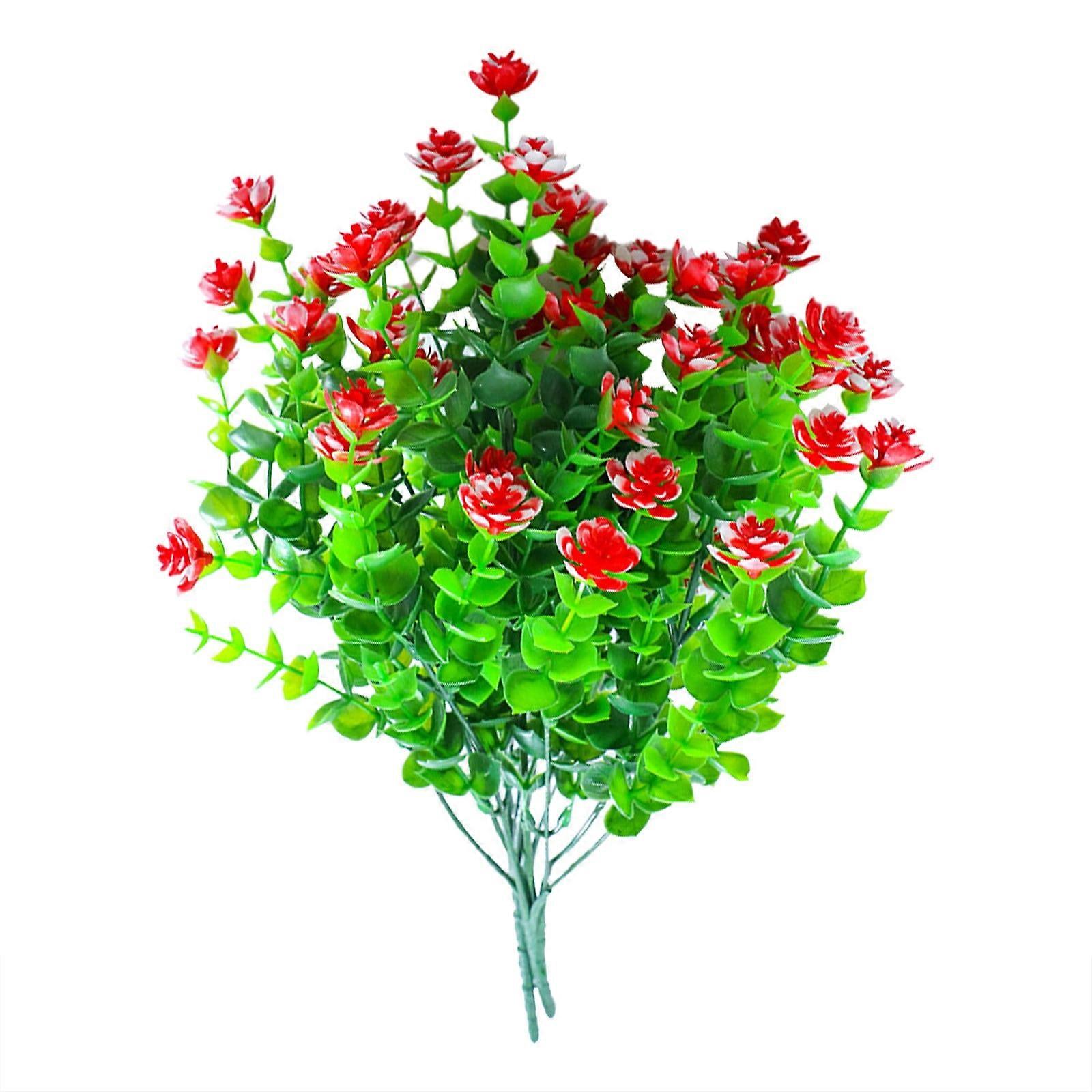 XIUH Home Decoration Artificial 8PC Artificial Flower Simulation Flower Outdoor Flower Home Decoration Plastic Green Bush (Red)