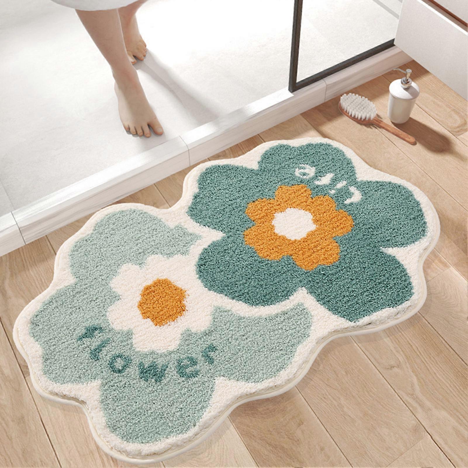 Hariumiu Non-slip Bathroom Mat, Lovely Flower Pattern, Thick Flocking Rug, Strong Water Absorption, Washable – Compatible with Standard Bath Trays