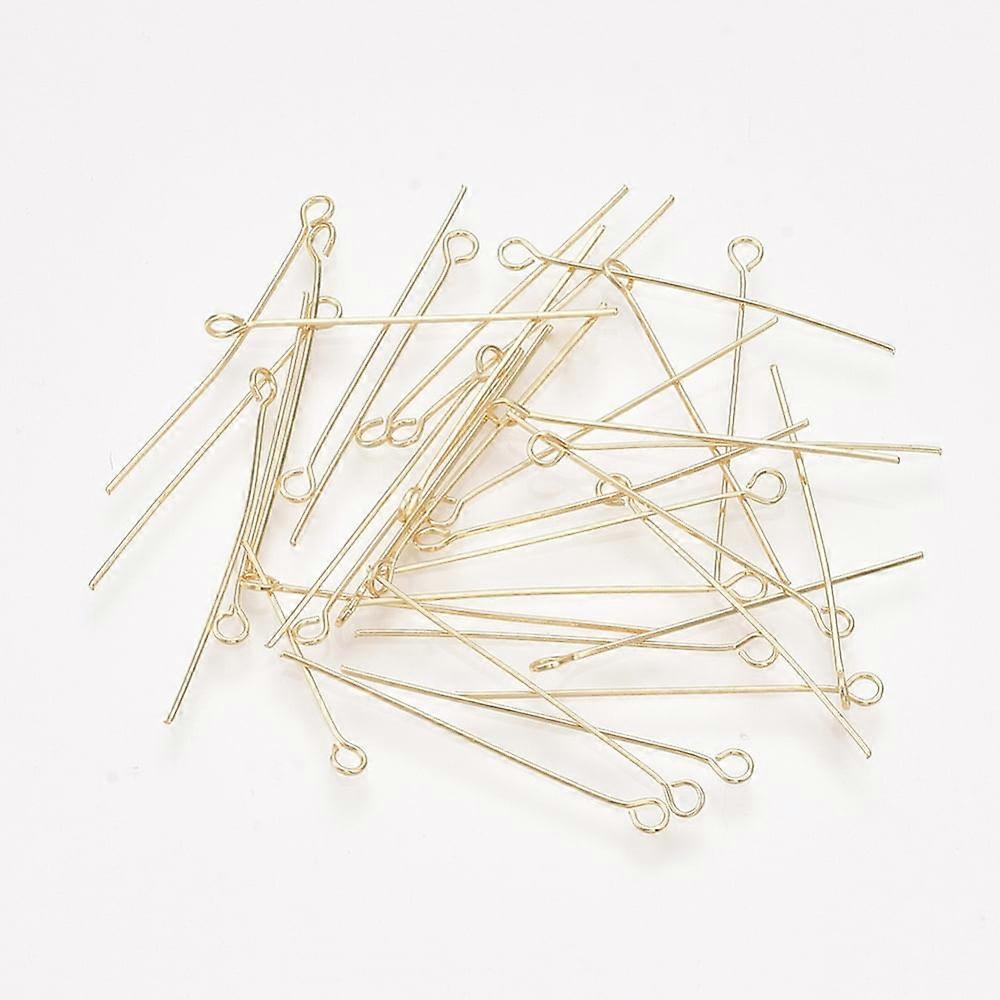 200pc Brass Eye Pins Real 18K Gold Plated 30x0.5mm Hole: 1.6mm
