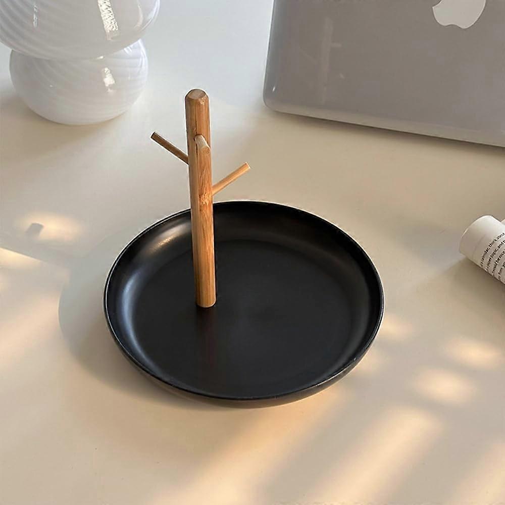 Feature: 1. Modern Style: Stylish and elegant style to enhance the highlights of your home and make your home look more modern and beautiful. 2. Neat Storage: Tray and shelf integration, more convenient for the storage of items, making your home more neat. 3. Soft Surface: Classic round design with soft surface, reliable storage tray adds joy and sophistication to your life. 4. Space Saving: Storage tray for organizing cosmetics, watches, keys, necklaces, etc, saving storage space on countertops and tables. 5. Application: Suitable for most spaces, such as kitchens, living rooms, bedrooms and bathrooms, etc, practical for use. Specification: Item Type: Round Table Storage Tray Material: ABS, wood Package List: 1 x Storage Tray1 x Bracket 💎Elegant and Modern: The 3-stand hanging organizer is made of high-quality wood, while the tray is made of durable ABS plastic, making it both stylish and functional. 💎Space-saving solution: The Jewelry Dish Tray and 3-stand hanging organizer provide ample space to hang your jewelry, keys, and other items, keeping them organized and easily accessible. 💎Versatile usage: The tray can be used as a catchall tray, key rack, ring holder, and more. making it an ideal choice for your entryway table or bedroom dresser. 💎Shape variations: Choose from round, square, or oval shapes to fit your style and decor. 💎Perfect gift: This jewelry dish tray makes a thoughtful and practical gift for your friends, family, or anyone who loves to keep their jewelry and keys organized.