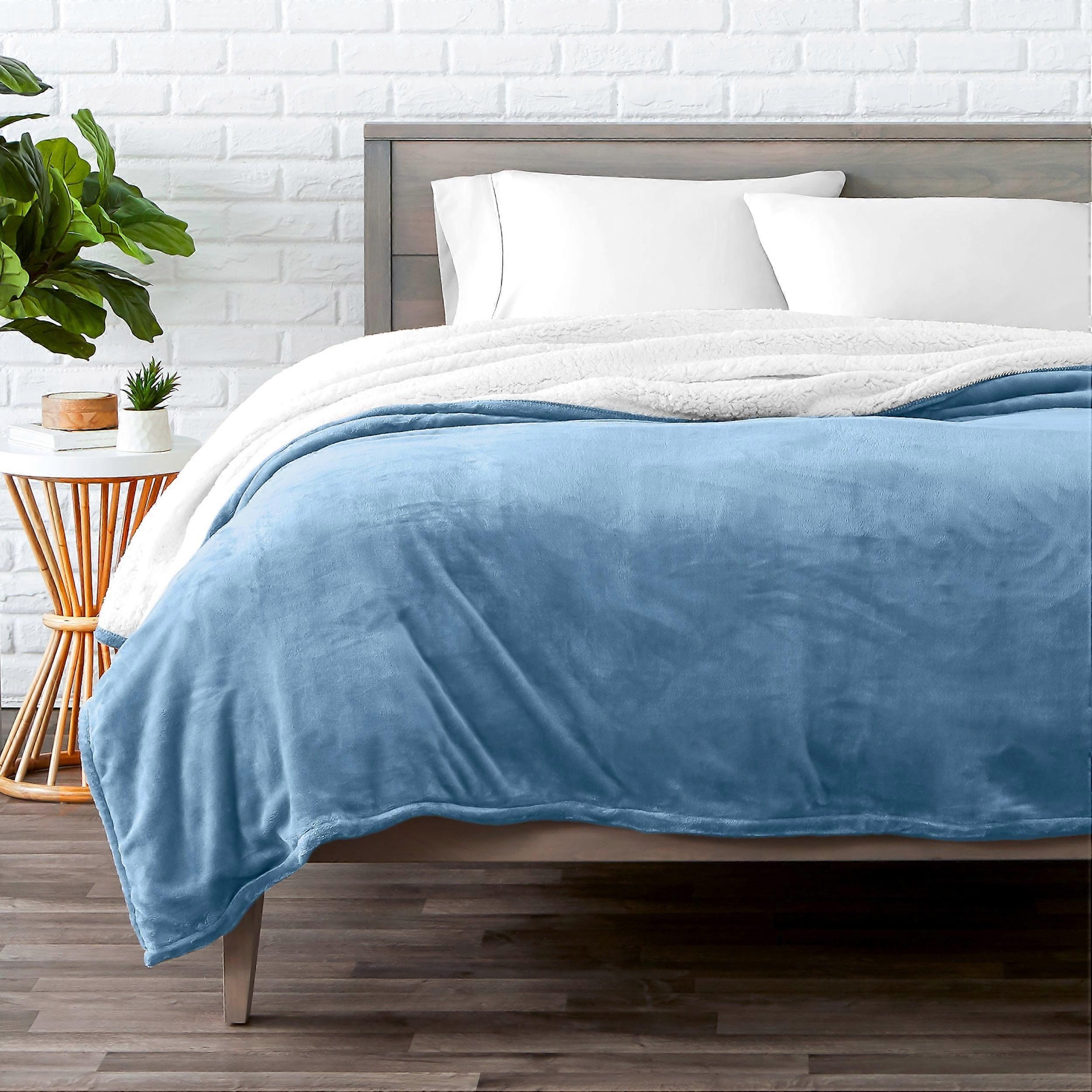 Bare Home Sherpa Fleece Blanket - Reversible Plush Bed Blanket Coronet Blue Full/Queen