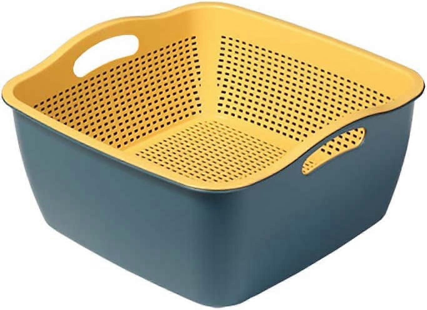 2-in-1 Kitchen Colander Food Strainer Bowl Sets, Multifunction Large Plastic Washing Bowl and Strainer (blue&yellow), 10.6'' x10.2 '' x 5.1'', (A15)