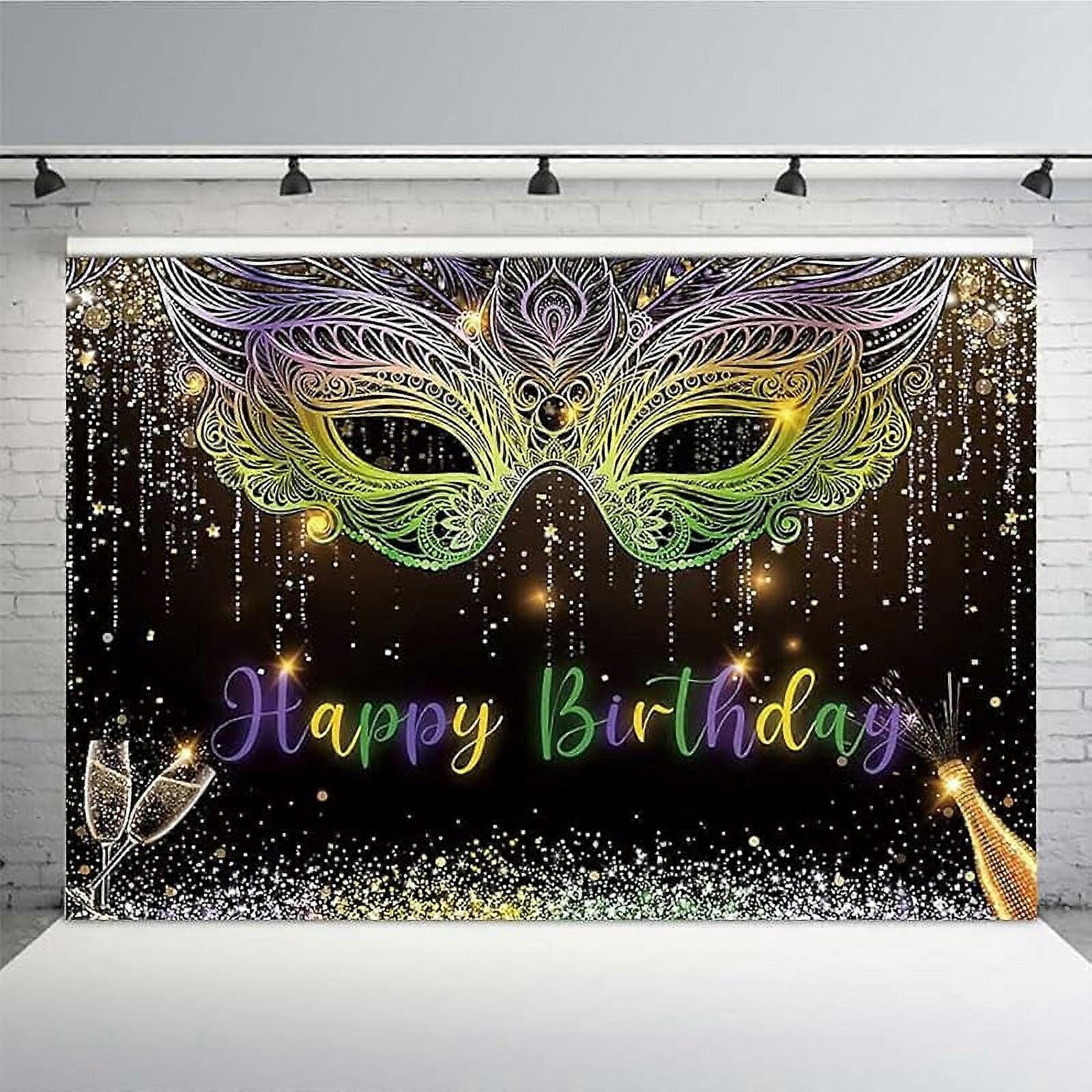 Custom Masquerade Ball Backdrop 7x5ft, Black Sliver, compatible with Mardi Gras, Carnival, Sweet 16, Party Photography & Studio Props