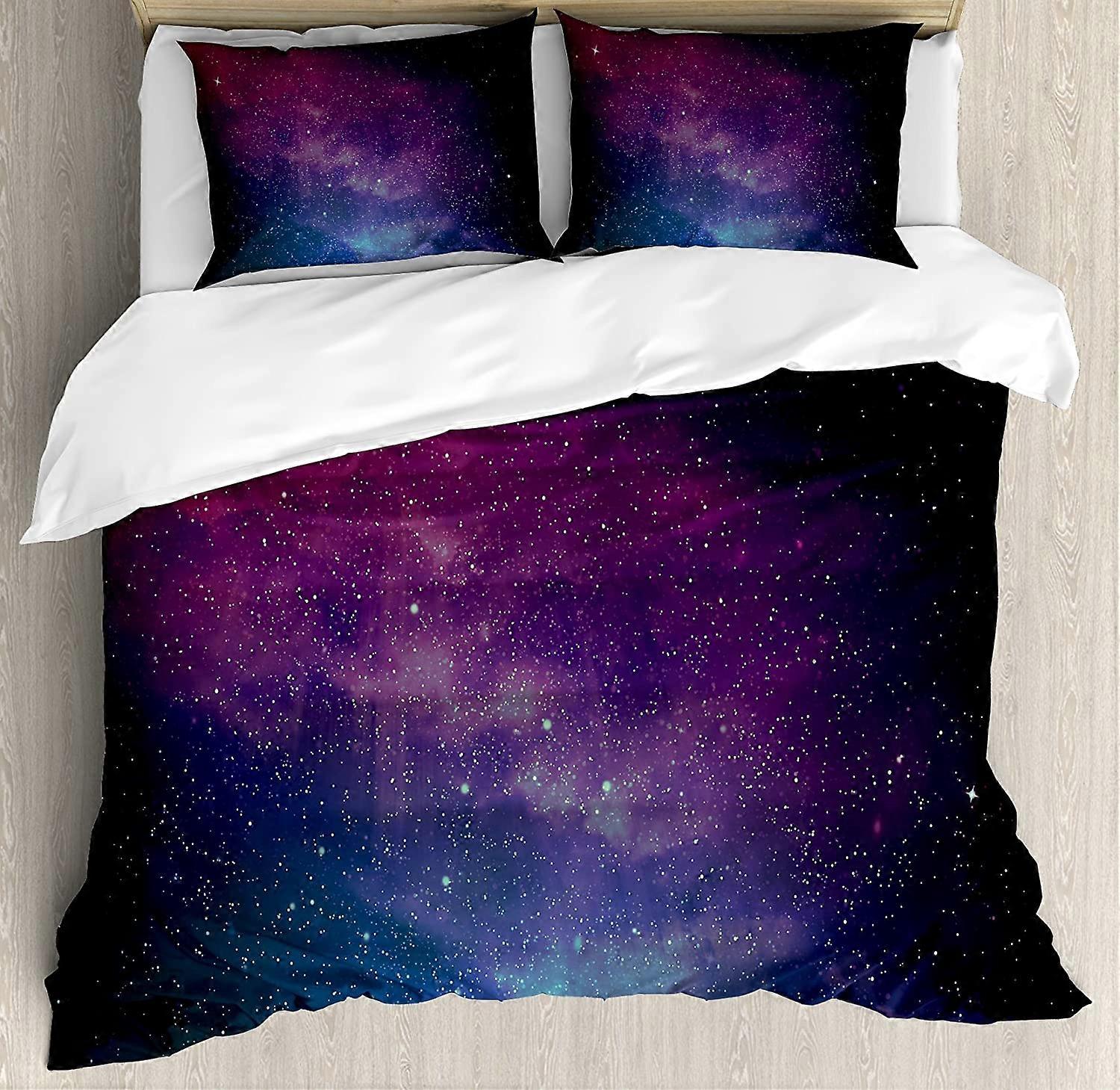 Star Duvet Cover Set, Universe Filled with Stars Nebula Galaxy Cassiopeia Interstellar Astronomy, 3PC Bedding w/2 Pillowcases, Magenta Black